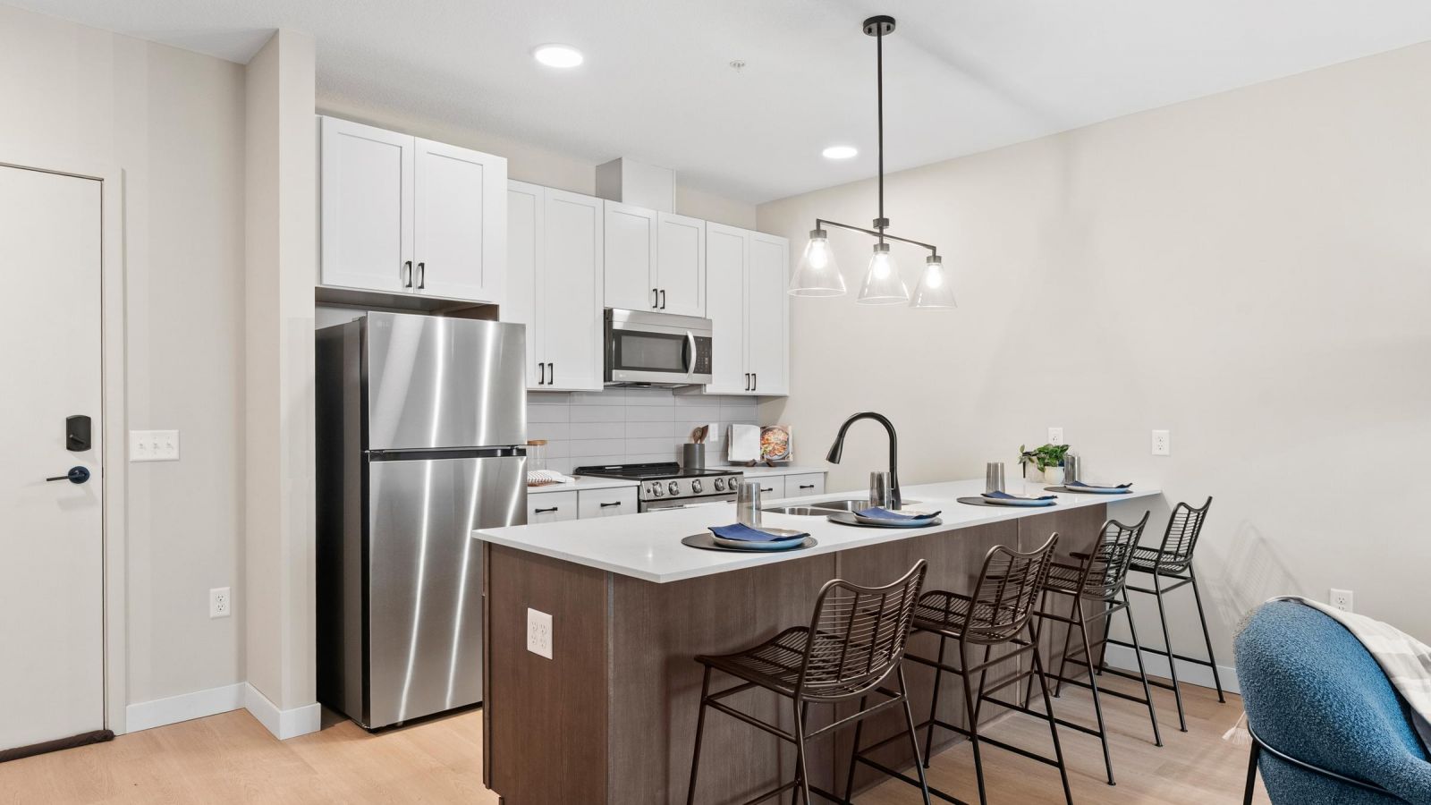 Modern finishes, stainless steel appliances, and thoughtful details come together to create an apartment that feels as bold and beautiful as Oberon itself.